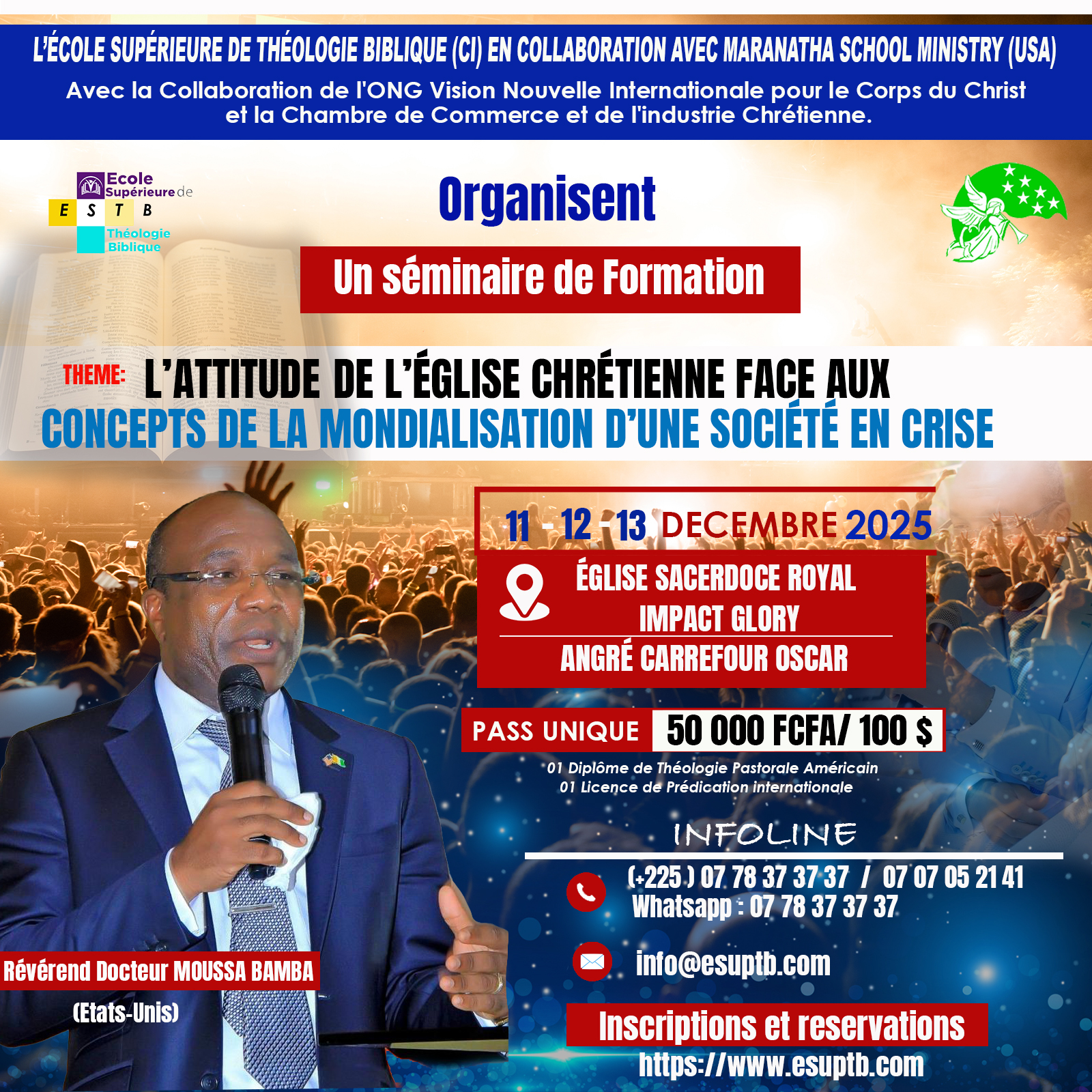 Bienvenue à l’ÉCOLE SUPÉRIEURE DE THEOLOGIE BIBLIQUE.